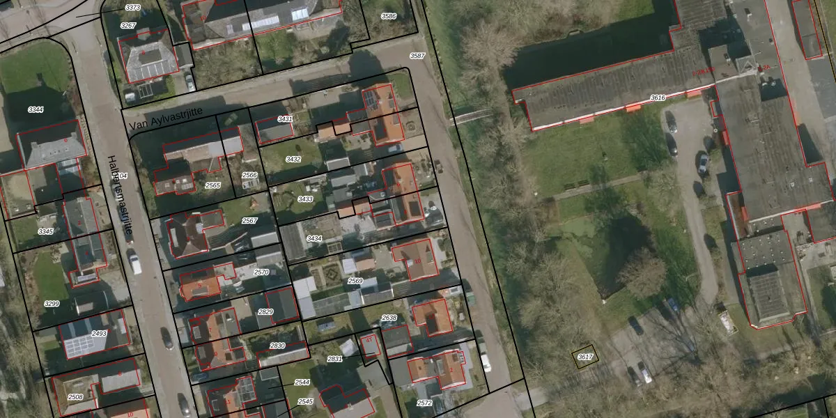 Gebruik de zoekbalk of klik op een perceel voor informatie over de adressen binnen dit perceel.