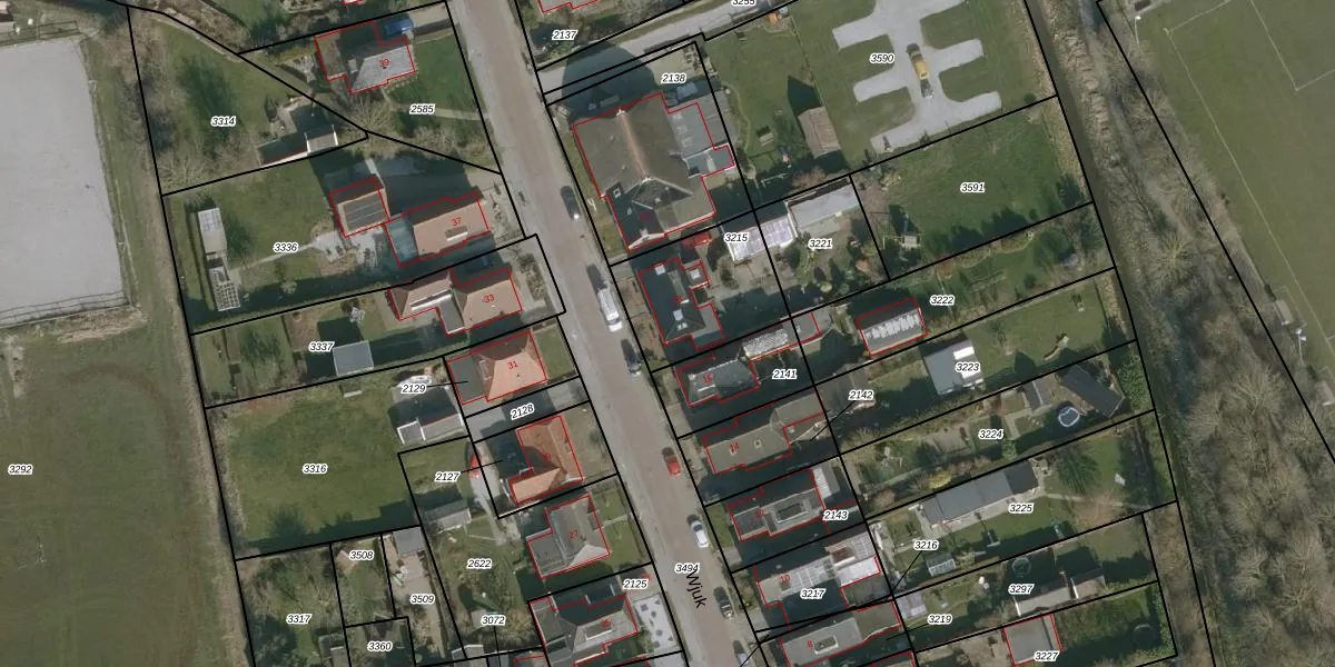 Het perceel waarop Wjuk 18 staat heeft een oppervlakte van 390 m². Dit is een groot perceel. De perceeloppervlakte wordt geregistreerd door het Kadaster. Gedetailleerde informatie over de maten van dit perceel kunt u vinden in het rapport Kadastrale kaart met maatvoering van Wjuk 18.