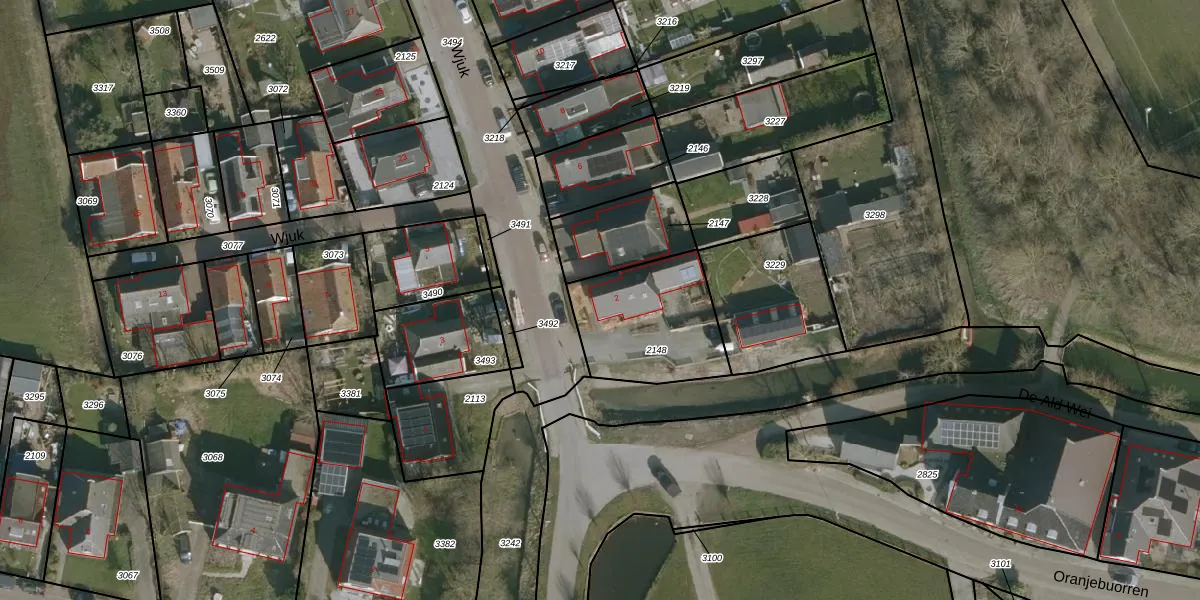 Het perceel waarop Wjuk 2 staat heeft een oppervlakte van 438 m². Dit is een groot perceel. De perceeloppervlakte wordt geregistreerd door het Kadaster. Gedetailleerde informatie over de maten van dit perceel kunt u vinden in het rapport Kadastrale kaart met maatvoering van Wjuk 2.