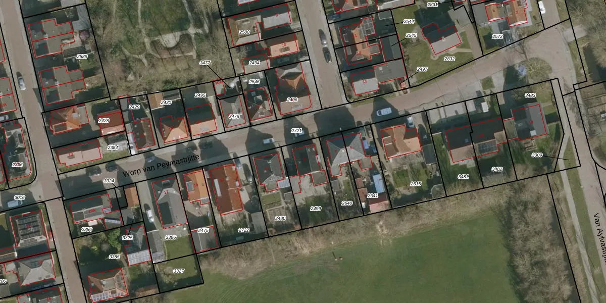 Gebruik de zoekbalk of klik op een perceel voor informatie over de adressen binnen dit perceel.
