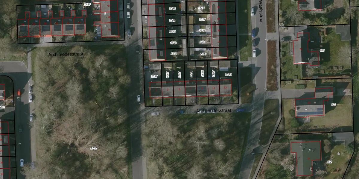 Archimedesstraat 5 is gelegen op kadastraal perceel TNZ00D2535. Deze kadastrale aanduiding is uniek en wordt gebruikt door het Kadaster om eigendomsrechten en andere zakelijke rechten vast te leggen. Het perceel maakt onderdeel uit van de kadastrale gemeente Terneuzen.