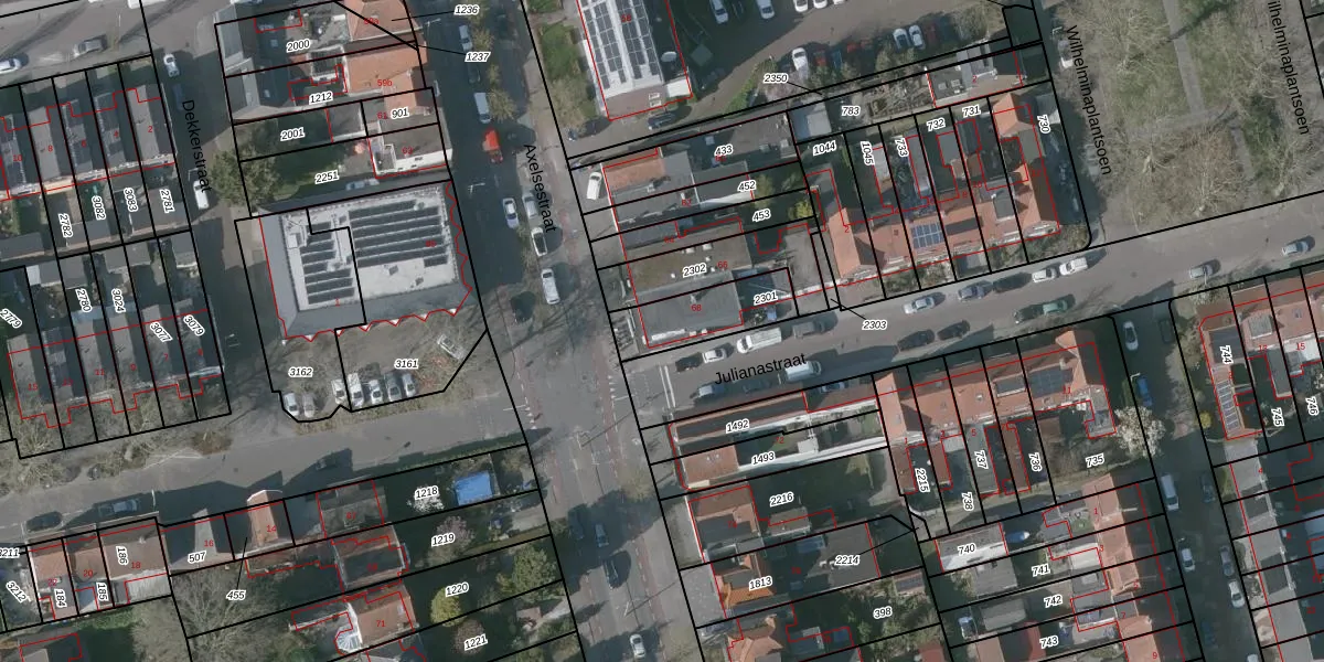 Gebruik de zoekbalk of klik op een perceel voor informatie over de adressen binnen dit perceel.