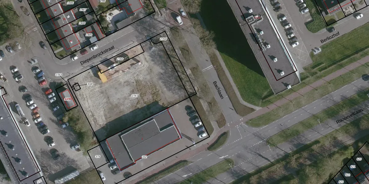 Het perceel waarop Bachlaan 101 staat heeft een oppervlakte van 1930 m². Dit is een zeer groot perceel. De perceeloppervlakte wordt geregistreerd door het Kadaster. Gedetailleerde informatie over de maten van dit perceel kunt u vinden in het rapport Kadastrale kaart met maatvoering van Bachlaan 101.