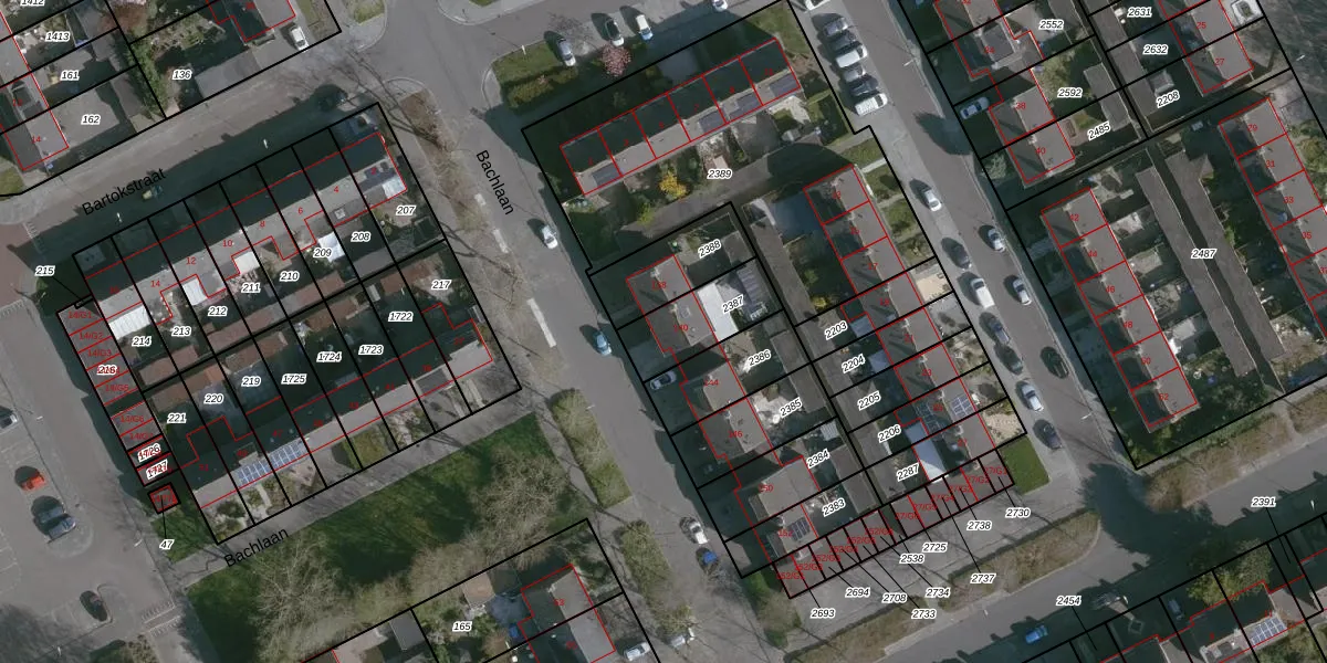 Het perceel waarop Bachlaan 140 staat heeft een oppervlakte van 214 m². Dit is een middelgroot perceel. De perceeloppervlakte wordt geregistreerd door het Kadaster. Gedetailleerde informatie over de maten van dit perceel kunt u vinden in het rapport Kadastrale kaart met maatvoering van Bachlaan 140.