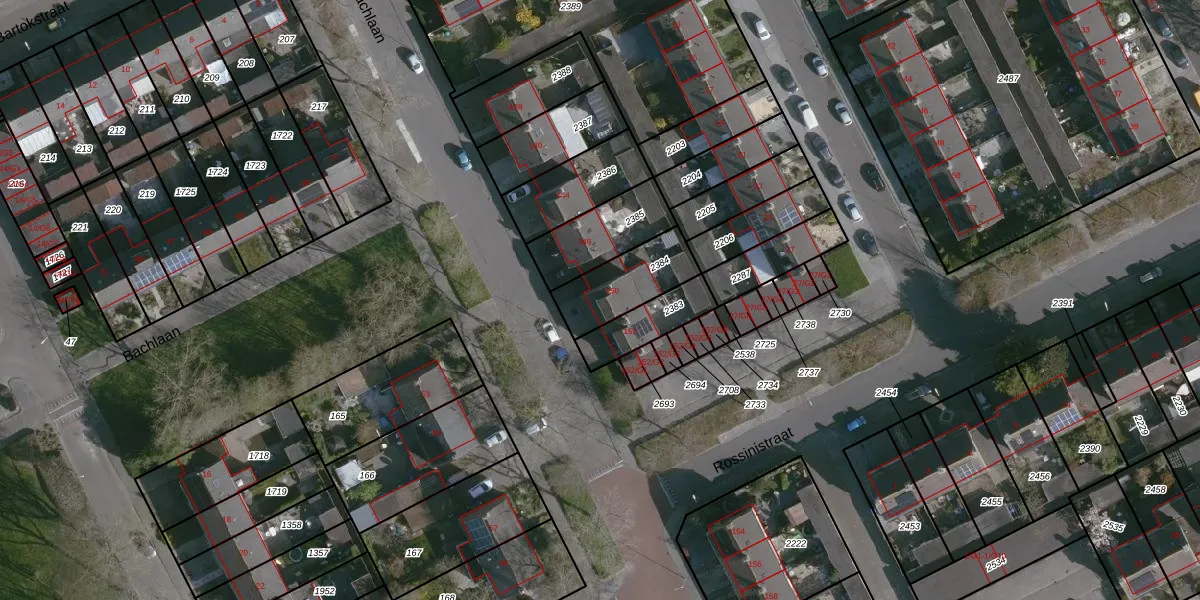 Het perceel waarop Bachlaan 150 staat heeft een oppervlakte van 215 m². Dit is een middelgroot perceel. De perceeloppervlakte wordt geregistreerd door het Kadaster. Gedetailleerde informatie over de maten van dit perceel kunt u vinden in het rapport Kadastrale kaart met maatvoering van Bachlaan 150.