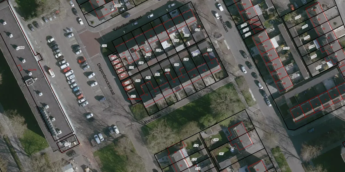 Het perceel waarop Bachlaan 69 staat heeft een oppervlakte van 155 m². Dit is een middelgroot perceel. De perceeloppervlakte wordt geregistreerd door het Kadaster. Gedetailleerde informatie over de maten van dit perceel kunt u vinden in het rapport Kadastrale kaart met maatvoering van Bachlaan 69.
