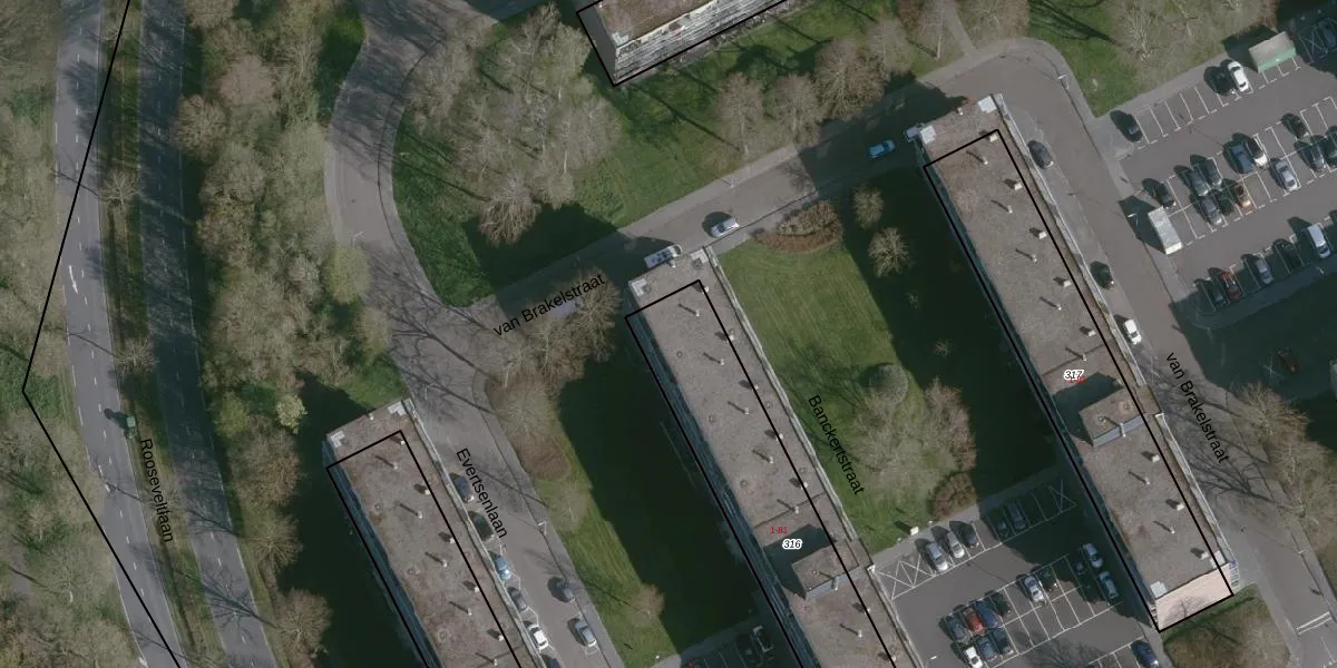 Het perceel waarop Banckertstraat 45 staat heeft een oppervlakte van 963 m². Dit is een groot perceel. De perceeloppervlakte wordt geregistreerd door het Kadaster. Gedetailleerde informatie over de maten van dit perceel kunt u vinden in het rapport Kadastrale kaart met maatvoering van Banckertstraat 45.