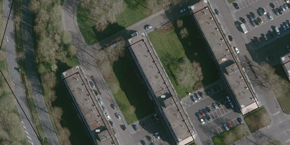 Het perceel waarop Banckertstraat 59 staat heeft een oppervlakte van 963 m². Dit is een groot perceel. De perceeloppervlakte wordt geregistreerd door het Kadaster. Gedetailleerde informatie over de maten van dit perceel kunt u vinden in het rapport Kadastrale kaart met maatvoering van Banckertstraat 59.