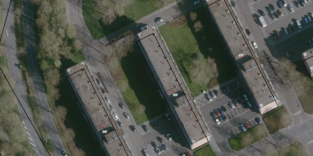 Het perceel waarop Banckertstraat 75 staat heeft een oppervlakte van 963 m². Dit is een groot perceel. De perceeloppervlakte wordt geregistreerd door het Kadaster. Gedetailleerde informatie over de maten van dit perceel kunt u vinden in het rapport Kadastrale kaart met maatvoering van Banckertstraat 75.