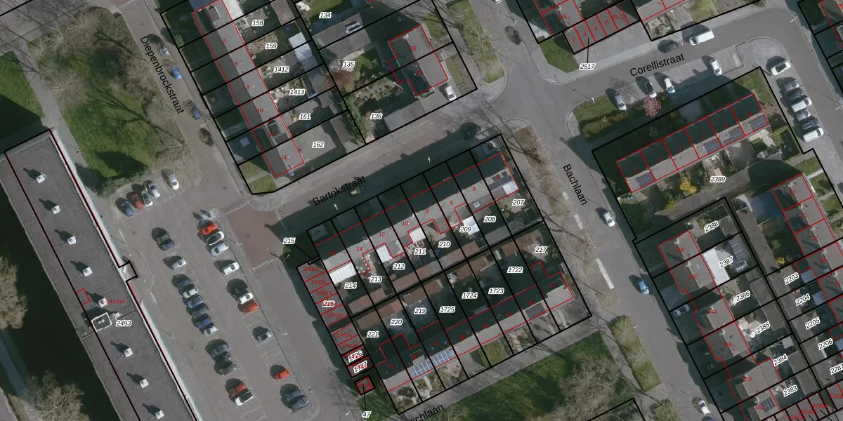 Gebruik de zoekbalk of klik op een perceel voor informatie over de adressen binnen dit perceel.