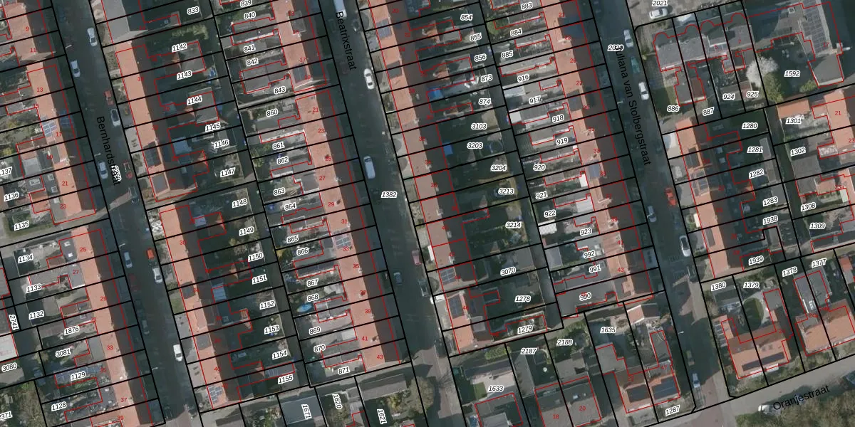 Gebruik de zoekbalk of klik op een perceel voor informatie over de adressen binnen dit perceel.