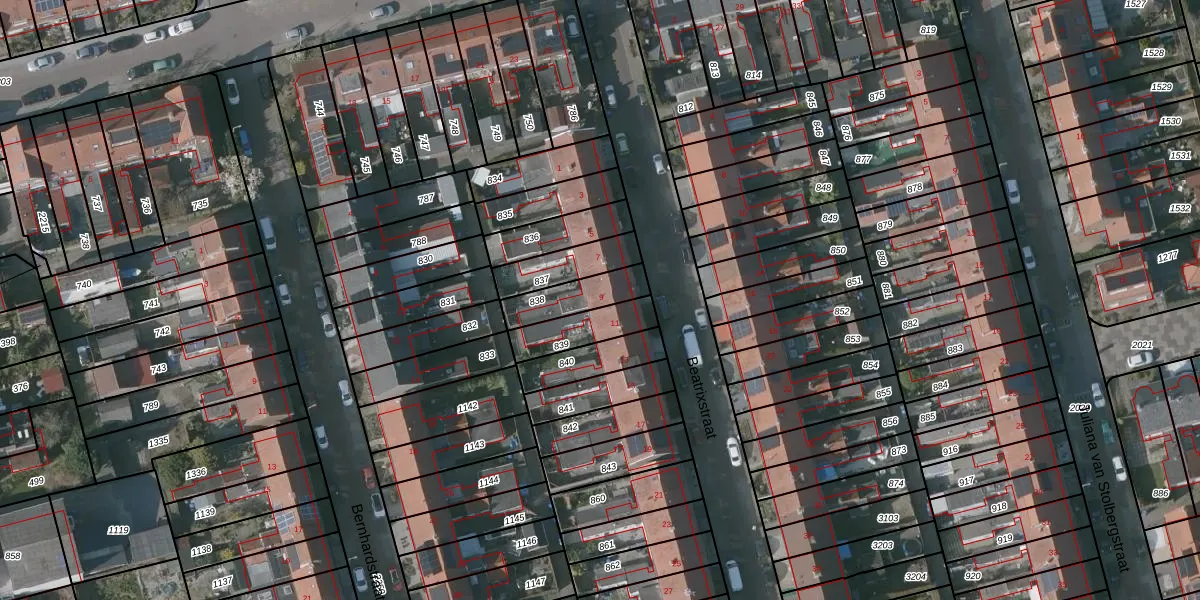 Gebruik de zoekbalk of klik op een perceel voor informatie over de adressen binnen dit perceel.