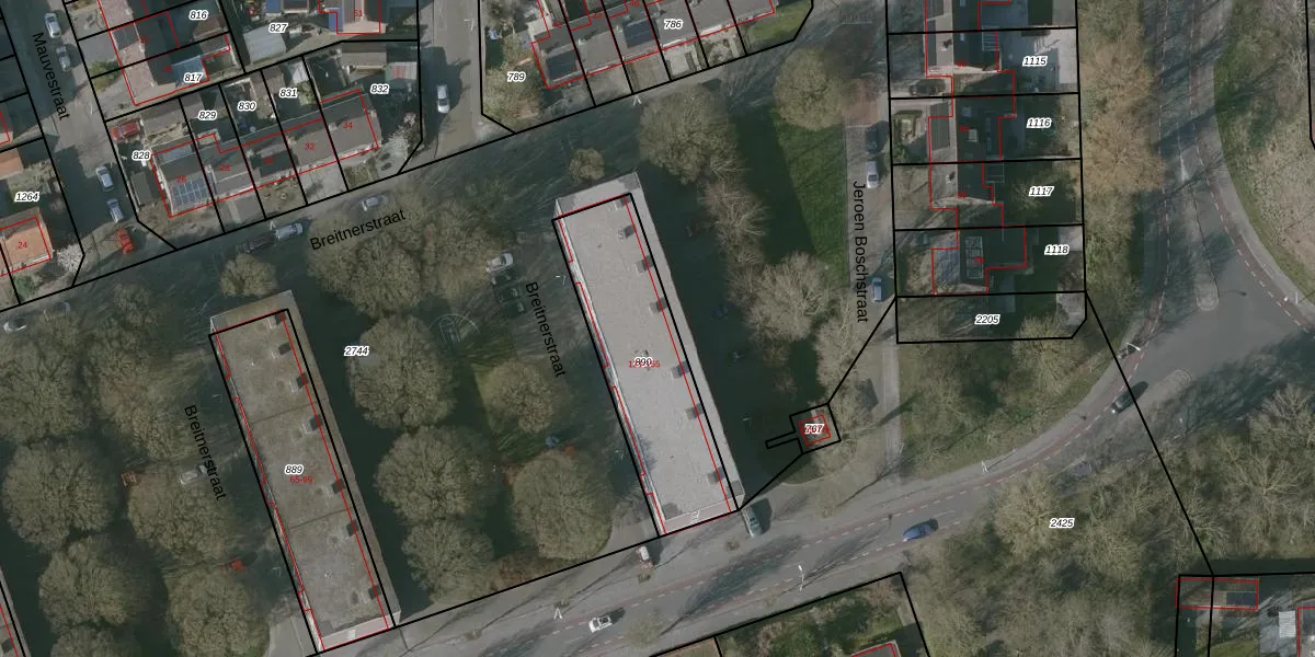 Het perceel waarop Breitnerstraat 141 staat heeft een oppervlakte van 648 m². Dit is een groot perceel. De perceeloppervlakte wordt geregistreerd door het Kadaster. Gedetailleerde informatie over de maten van dit perceel kunt u vinden in het rapport Kadastrale kaart met maatvoering van Breitnerstraat 141.