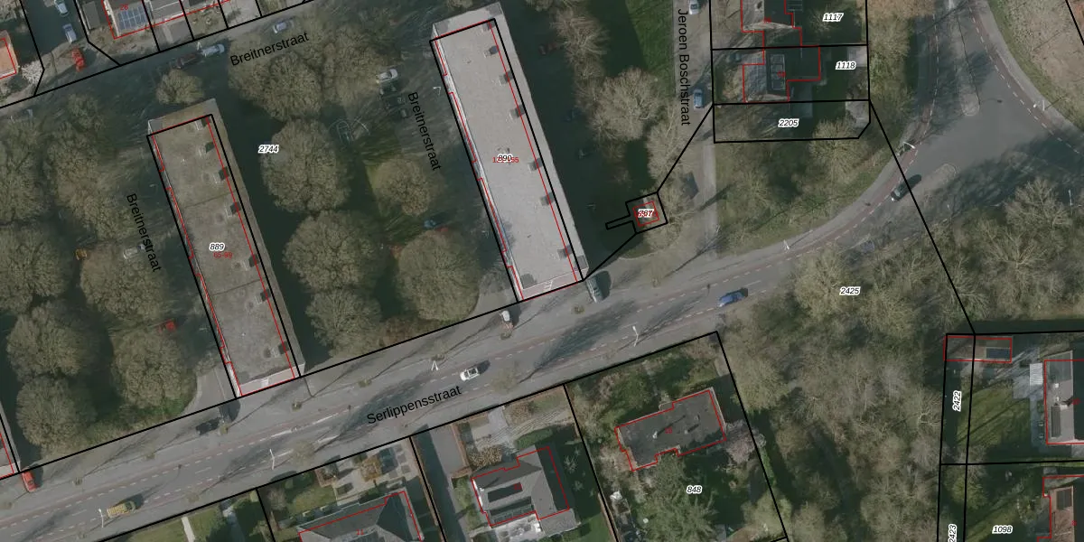 Het perceel waarop Breitnerstraat 151 staat heeft een oppervlakte van 648 m². Dit is een groot perceel. De perceeloppervlakte wordt geregistreerd door het Kadaster. Gedetailleerde informatie over de maten van dit perceel kunt u vinden in het rapport Kadastrale kaart met maatvoering van Breitnerstraat 151.