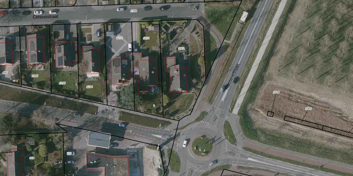 Het perceel waarop Celsiusstraat 43 staat heeft een oppervlakte van 1262 m². Dit is een zeer groot perceel. De perceeloppervlakte wordt geregistreerd door het Kadaster. Gedetailleerde informatie over de maten van dit perceel kunt u vinden in het rapport Kadastrale kaart met maatvoering van Celsiusstraat 43.