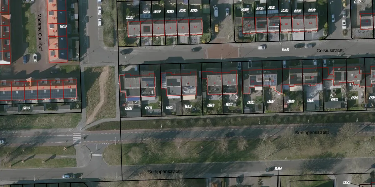 Het perceel waarop Celsiusstraat 7 staat heeft een oppervlakte van 302 m². Dit is een groot perceel. De perceeloppervlakte wordt geregistreerd door het Kadaster. Gedetailleerde informatie over de maten van dit perceel kunt u vinden in het rapport Kadastrale kaart met maatvoering van Celsiusstraat 7.