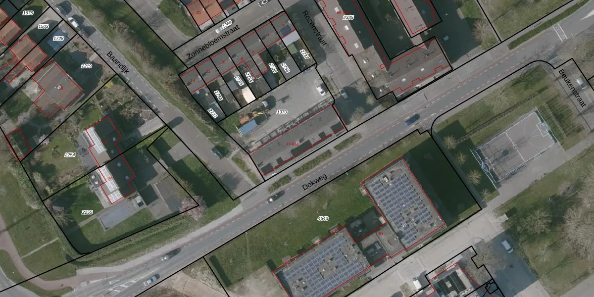Dokweg 55 is gelegen op kadastraal perceel TNZ00M1370. Deze kadastrale aanduiding is uniek en wordt gebruikt door het Kadaster om eigendomsrechten en andere zakelijke rechten vast te leggen. Het perceel maakt onderdeel uit van de kadastrale gemeente Terneuzen.