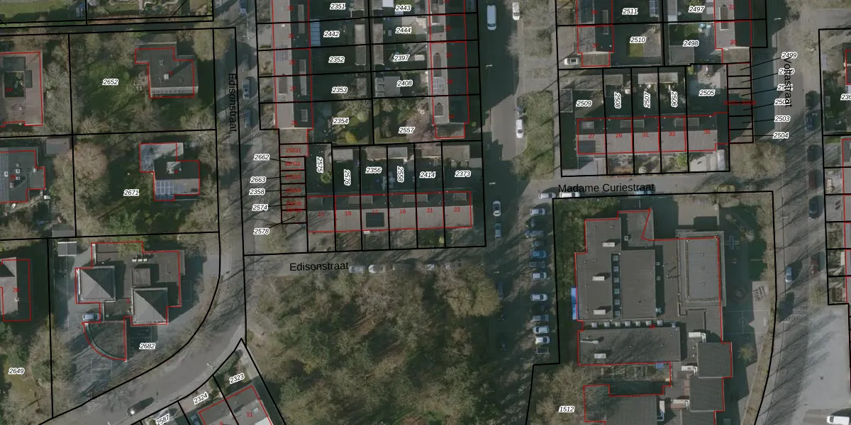 Edisonstraat 21 is gelegen op kadastraal perceel TNZ00D2414. Deze kadastrale aanduiding is uniek en wordt gebruikt door het Kadaster om eigendomsrechten en andere zakelijke rechten vast te leggen. Het perceel maakt onderdeel uit van de kadastrale gemeente Terneuzen.
