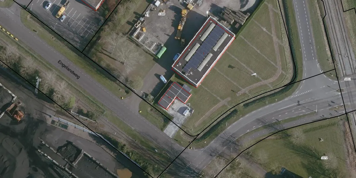 Het perceel waarop Engelandweg 1-a staat heeft een oppervlakte van 9880 m². Dit is een zeer groot perceel. De perceeloppervlakte wordt geregistreerd door het Kadaster. Gedetailleerde informatie over de maten van dit perceel kunt u vinden in het rapport Kadastrale kaart met maatvoering van Engelandweg 1-a.