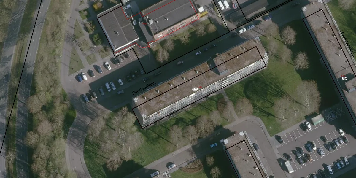 Het perceel waarop Evertsenlaan 3 staat heeft een oppervlakte van 963 m². Dit is een groot perceel. De perceeloppervlakte wordt geregistreerd door het Kadaster. Gedetailleerde informatie over de maten van dit perceel kunt u vinden in het rapport Kadastrale kaart met maatvoering van Evertsenlaan 3.