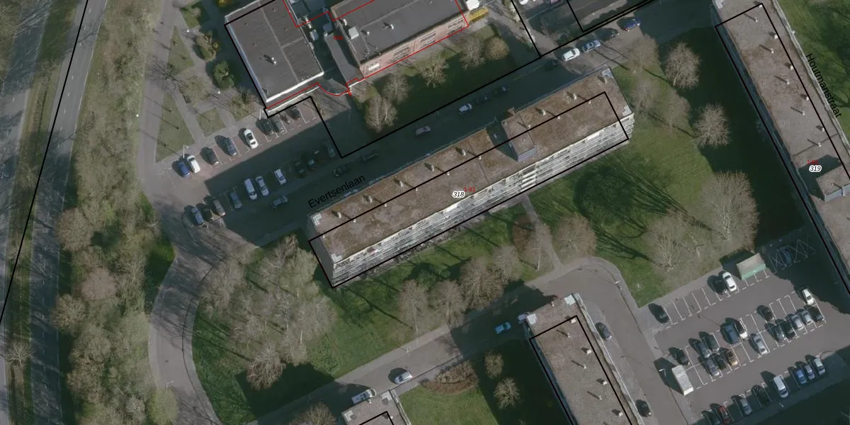 Evertsenlaan 39 is gelegen op kadastraal perceel TNZ00N318. Deze kadastrale aanduiding is uniek en wordt gebruikt door het Kadaster om eigendomsrechten en andere zakelijke rechten vast te leggen. Het perceel maakt onderdeel uit van de kadastrale gemeente Terneuzen.