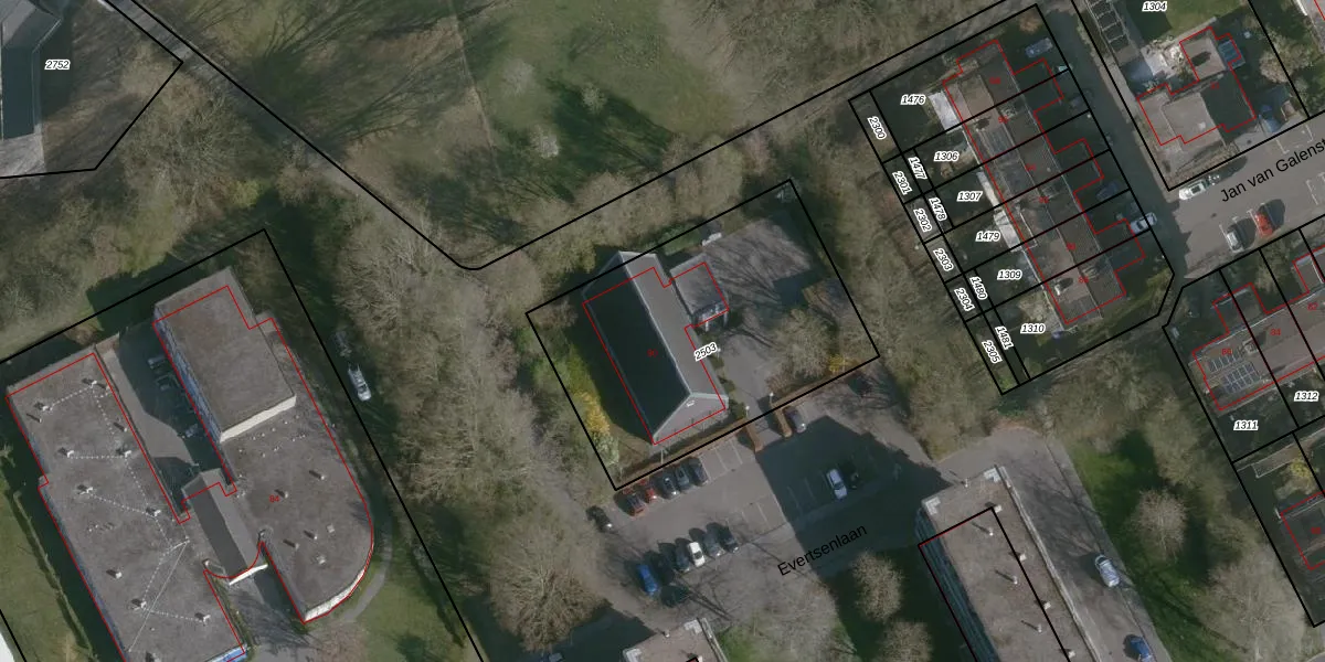 Het perceel waarop Evertsenlaan 90 staat heeft een oppervlakte van 1341 m². Dit is een zeer groot perceel. De perceeloppervlakte wordt geregistreerd door het Kadaster. Gedetailleerde informatie over de maten van dit perceel kunt u vinden in het rapport Kadastrale kaart met maatvoering van Evertsenlaan 90.