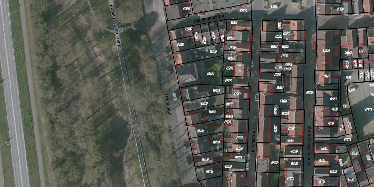Gebruik de zoekbalk of klik op een perceel voor informatie over de adressen binnen dit perceel.