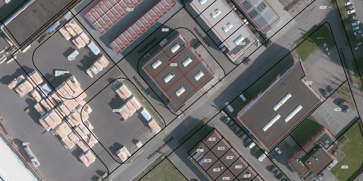 Modempark 10 is gelegen op kadastraal perceel TNZ00F2052. Deze kadastrale aanduiding is uniek en wordt gebruikt door het Kadaster om eigendomsrechten en andere zakelijke rechten vast te leggen. Het perceel maakt onderdeel uit van de kadastrale gemeente Terneuzen.