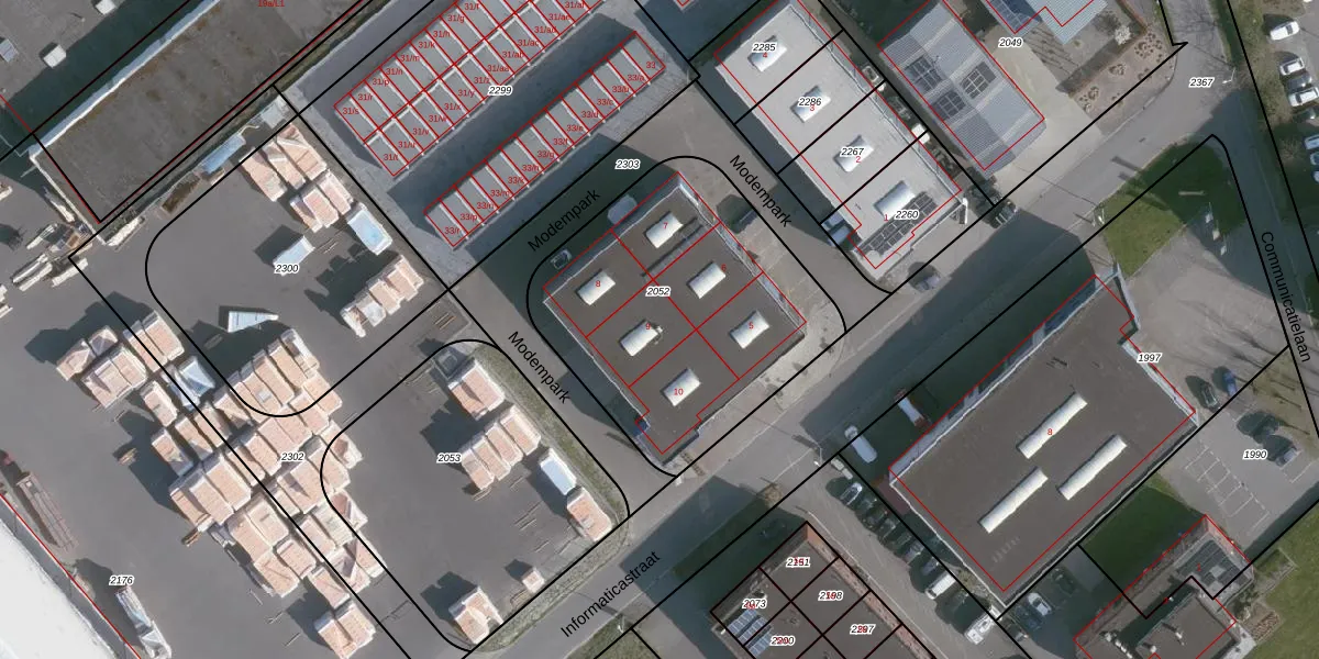 Modempark 9 is gelegen op kadastraal perceel TNZ00F2052. Deze kadastrale aanduiding is uniek en wordt gebruikt door het Kadaster om eigendomsrechten en andere zakelijke rechten vast te leggen. Het perceel maakt onderdeel uit van de kadastrale gemeente Terneuzen.