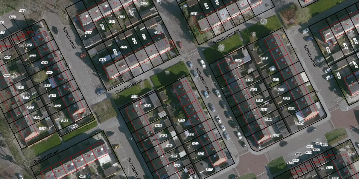 Schubertstraat 13 is gelegen op kadastraal perceel TNZ00E3614. Deze kadastrale aanduiding is uniek en wordt gebruikt door het Kadaster om eigendomsrechten en andere zakelijke rechten vast te leggen. Het perceel maakt onderdeel uit van de kadastrale gemeente Terneuzen.