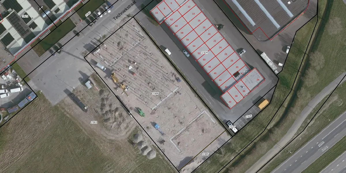 Het perceel waarop Techniekstraat 84 staat heeft een oppervlakte van 3133 m². Dit is een zeer groot perceel. De perceeloppervlakte wordt geregistreerd door het Kadaster. Gedetailleerde informatie over de maten van dit perceel kunt u vinden in het rapport Kadastrale kaart met maatvoering van Techniekstraat 84.