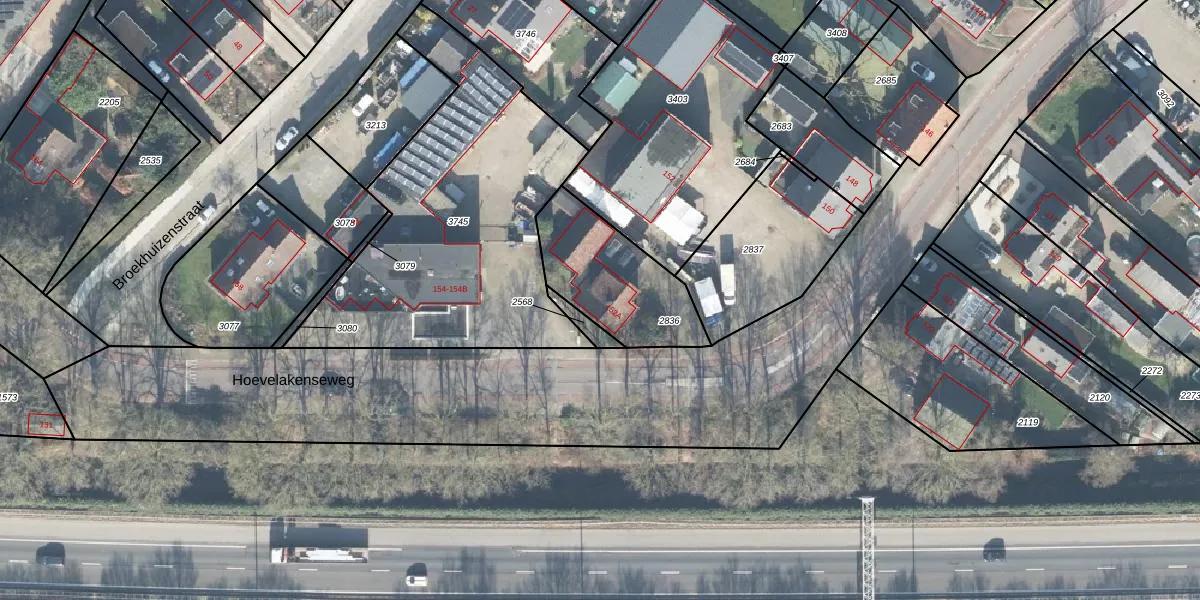 Het perceel waarop Hoevelakenseweg 152-A staat heeft een oppervlakte van 408 m². Dit is een groot perceel. De perceeloppervlakte wordt geregistreerd door het Kadaster. Gedetailleerde informatie over de maten van dit perceel kunt u vinden in het rapport Kadastrale kaart met maatvoering van Hoevelakenseweg 152-A.