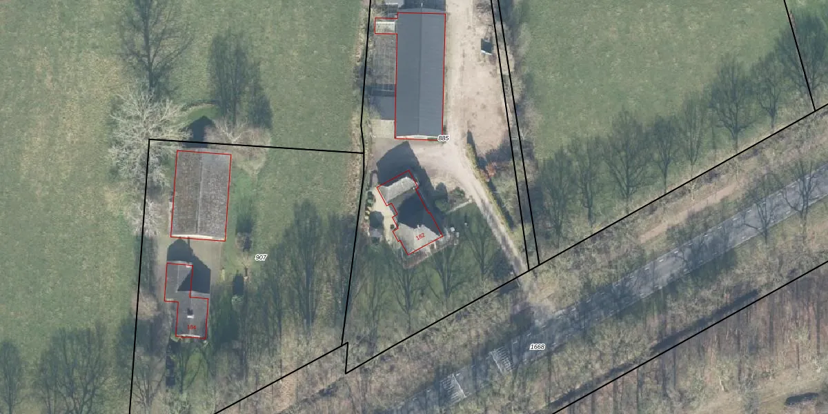 Het perceel waarop Rijksweg 182 staat heeft een oppervlakte van 2815 m². Dit is een zeer groot perceel. De perceeloppervlakte wordt geregistreerd door het Kadaster. Gedetailleerde informatie over de maten van dit perceel kunt u vinden in het rapport Kadastrale kaart met maatvoering van Rijksweg 182.