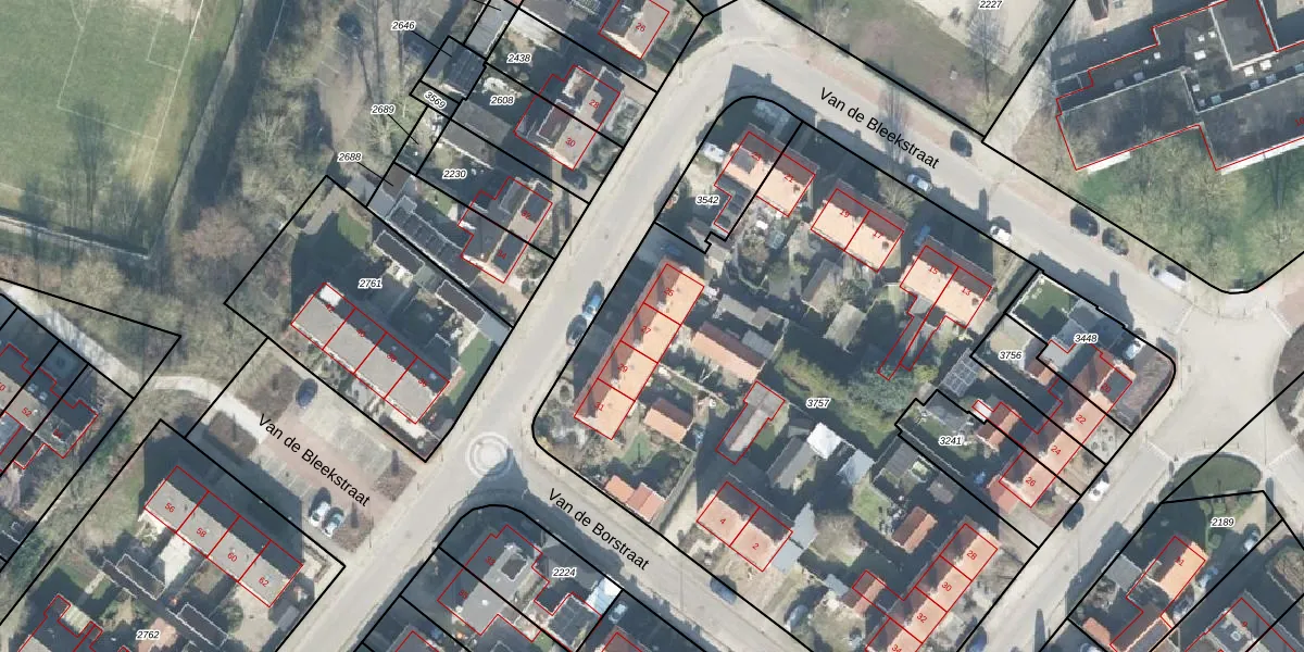 Het perceel waarop Van de Bleekstraat 27 staat heeft een oppervlakte van 4047 m². Dit is een zeer groot perceel. De perceeloppervlakte wordt geregistreerd door het Kadaster. Gedetailleerde informatie over de maten van dit perceel kunt u vinden in het rapport Kadastrale kaart met maatvoering van Van de Bleekstraat 27.
