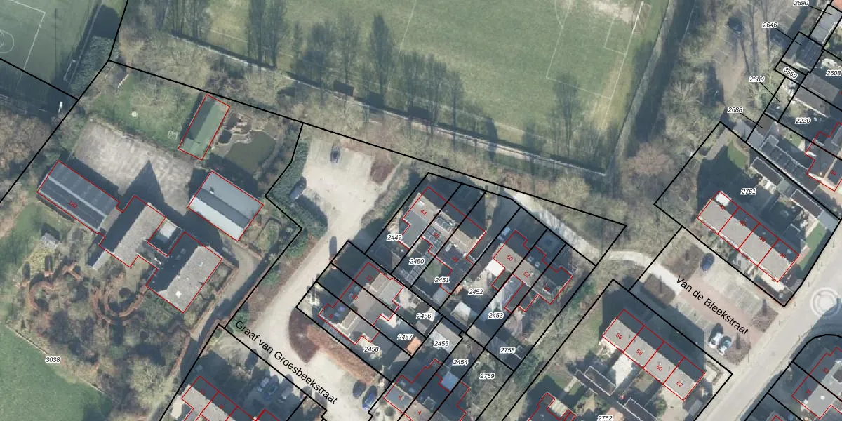 Van de Bleekstraat 44 is gelegen op kadastraal perceel VHZ02A2449. Deze kadastrale aanduiding is uniek en wordt gebruikt door het Kadaster om eigendomsrechten en andere zakelijke rechten vast te leggen. Het perceel maakt onderdeel uit van de kadastrale gemeente Voorthuizen.