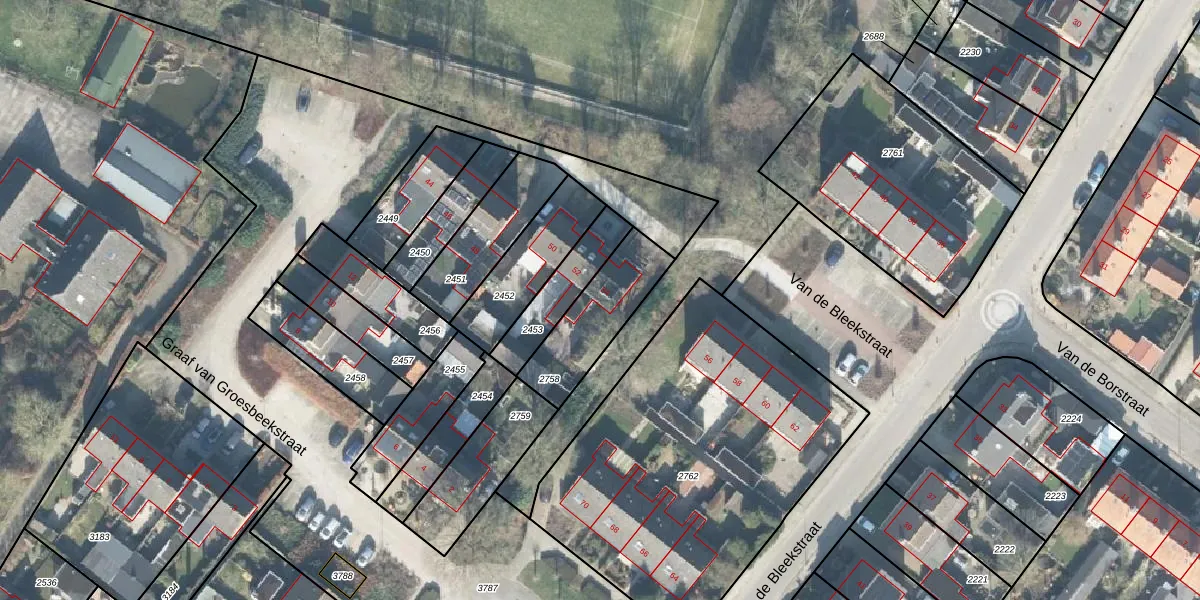 Van de Bleekstraat 54 is gelegen op kadastraal perceel VHZ02A2758. Deze kadastrale aanduiding is uniek en wordt gebruikt door het Kadaster om eigendomsrechten en andere zakelijke rechten vast te leggen. Het perceel maakt onderdeel uit van de kadastrale gemeente Voorthuizen.