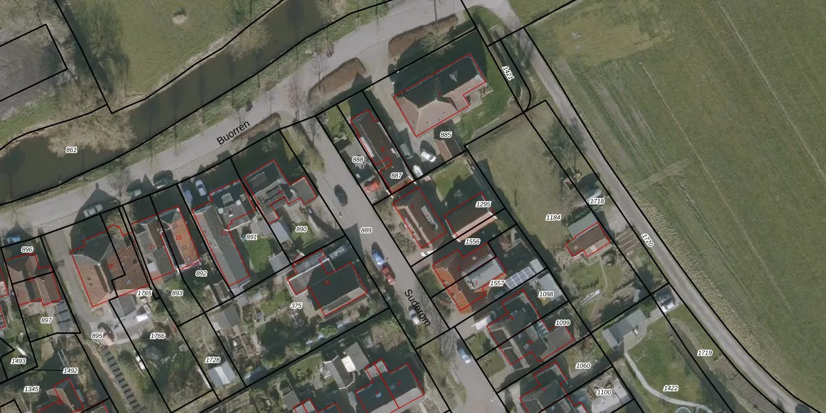 Het perceel waarop Suderom 1 staat heeft een oppervlakte van 464 m². Dit is een groot perceel. De perceeloppervlakte wordt geregistreerd door het Kadaster. Gedetailleerde informatie over de maten van dit perceel kunt u vinden in het rapport Kadastrale kaart met maatvoering van Suderom 1.