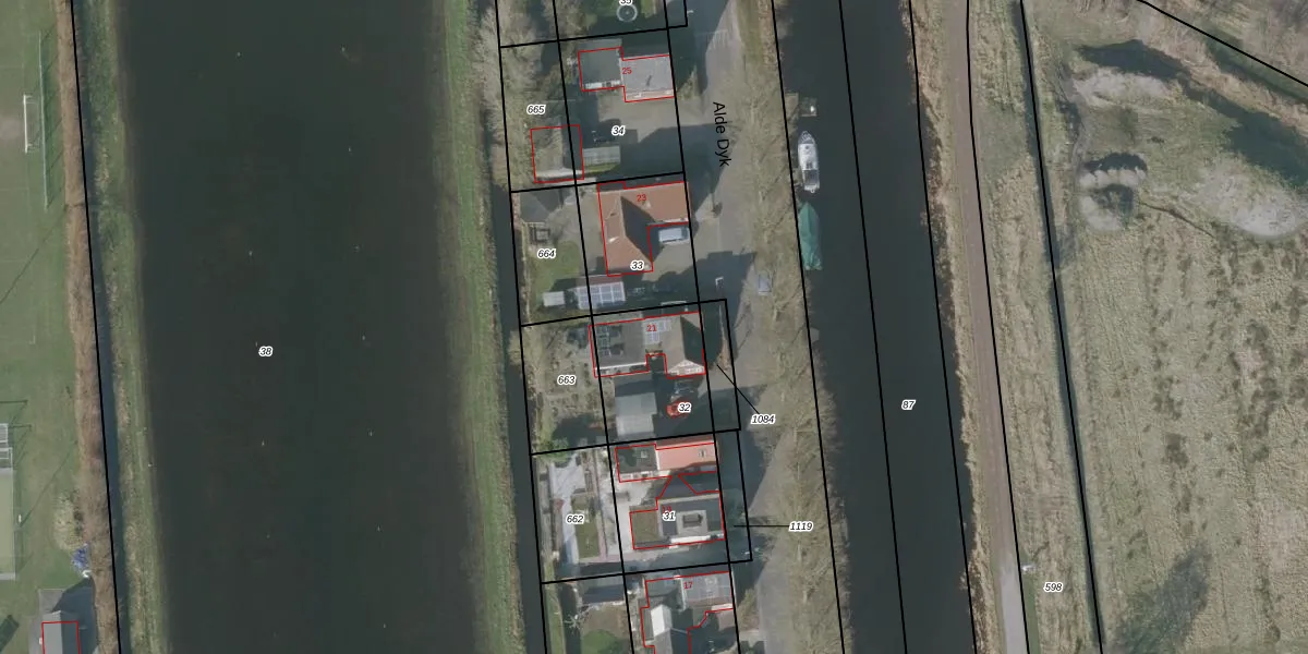 Alde Dyk 21 is gelegen op kadastraal perceel GRD00E32. Deze kadastrale aanduiding is uniek en wordt gebruikt door het Kadaster om eigendomsrechten en andere zakelijke rechten vast te leggen. Het perceel maakt onderdeel uit van de kadastrale gemeente Gorredijk.