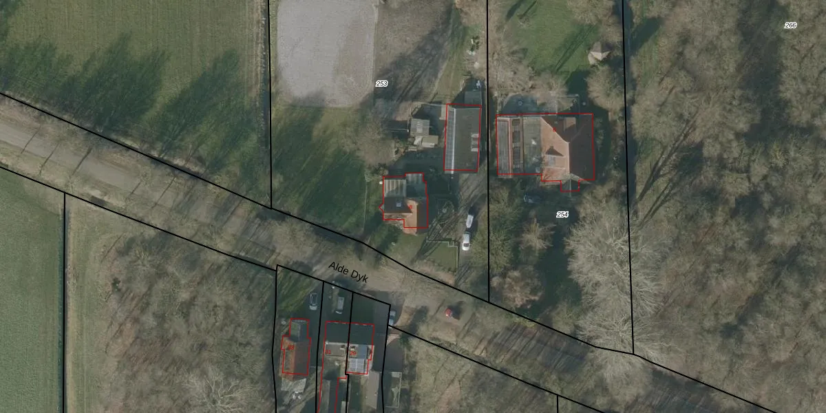 Alde Dyk 8 is gelegen op kadastraal perceel GRD00E253. Deze kadastrale aanduiding is uniek en wordt gebruikt door het Kadaster om eigendomsrechten en andere zakelijke rechten vast te leggen. Het perceel maakt onderdeel uit van de kadastrale gemeente Gorredijk.