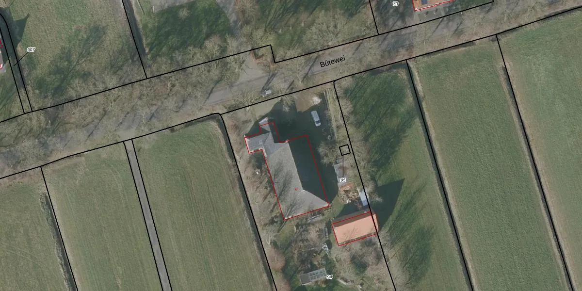 Bûtewei 6 is gelegen op kadastraal perceel GRD00F94. Deze kadastrale aanduiding is uniek en wordt gebruikt door het Kadaster om eigendomsrechten en andere zakelijke rechten vast te leggen. Het perceel maakt onderdeel uit van de kadastrale gemeente Gorredijk.