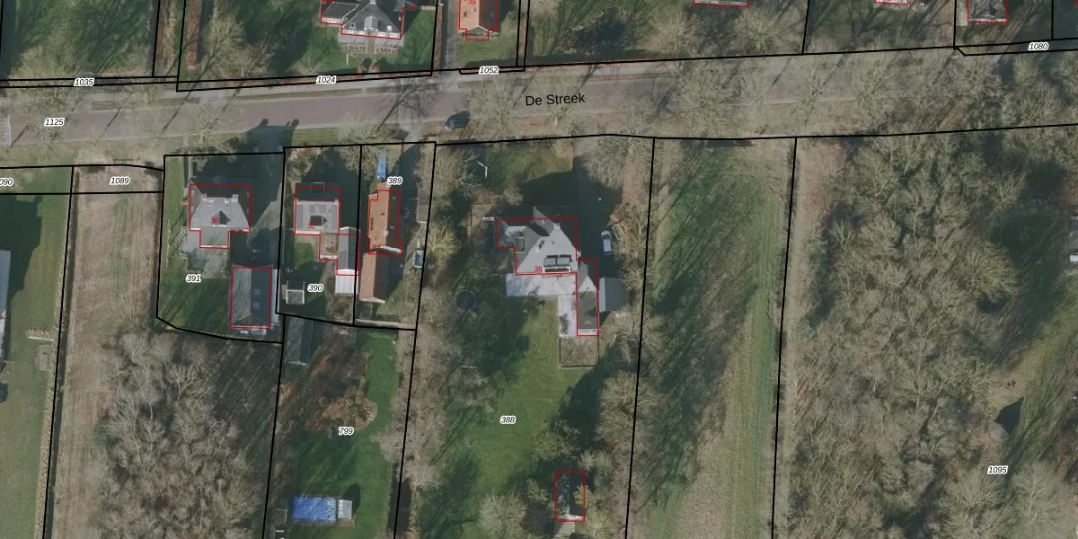 De Streek 36 is gelegen op kadastraal perceel GRD00E388. Deze kadastrale aanduiding is uniek en wordt gebruikt door het Kadaster om eigendomsrechten en andere zakelijke rechten vast te leggen. Het perceel maakt onderdeel uit van de kadastrale gemeente Gorredijk.