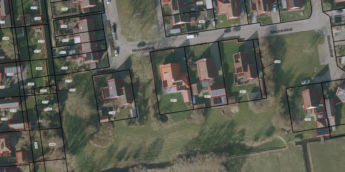 Mounesleat 27 is gelegen op kadastraal perceel GRD00B3871. Deze kadastrale aanduiding is uniek en wordt gebruikt door het Kadaster om eigendomsrechten en andere zakelijke rechten vast te leggen. Het perceel maakt onderdeel uit van de kadastrale gemeente Gorredijk.