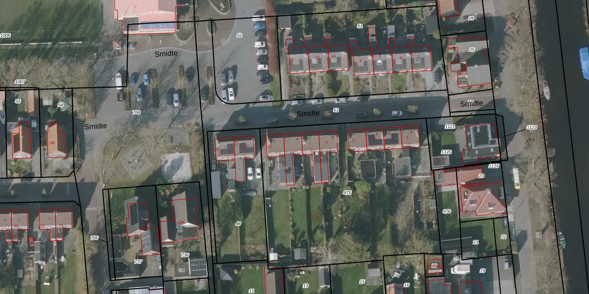 Smidte 13 is gelegen op kadastraal perceel GRD00E975. Deze kadastrale aanduiding is uniek en wordt gebruikt door het Kadaster om eigendomsrechten en andere zakelijke rechten vast te leggen. Het perceel maakt onderdeel uit van de kadastrale gemeente Gorredijk.
