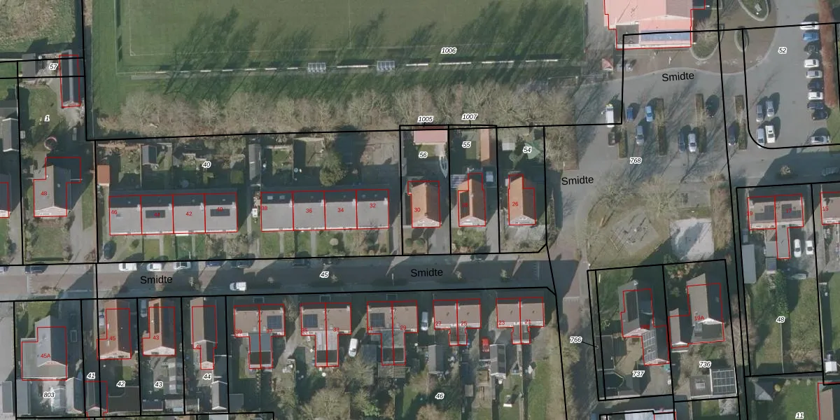 Het perceel waarop Smidte 30 staat heeft een oppervlakte van 345 m². Dit is een groot perceel. De perceeloppervlakte wordt geregistreerd door het Kadaster. Gedetailleerde informatie over de maten van dit perceel kunt u vinden in het rapport Kadastrale kaart met maatvoering van Smidte 30.