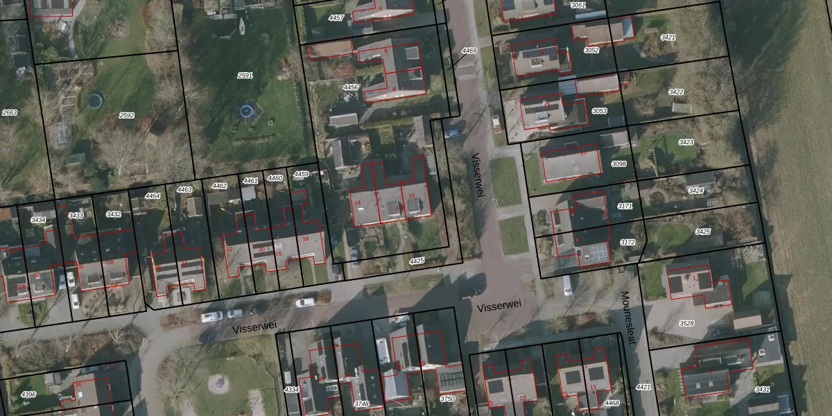 Visserwei 10 is gelegen op kadastraal perceel GRD00B4456. Deze kadastrale aanduiding is uniek en wordt gebruikt door het Kadaster om eigendomsrechten en andere zakelijke rechten vast te leggen. Het perceel maakt onderdeel uit van de kadastrale gemeente Gorredijk.