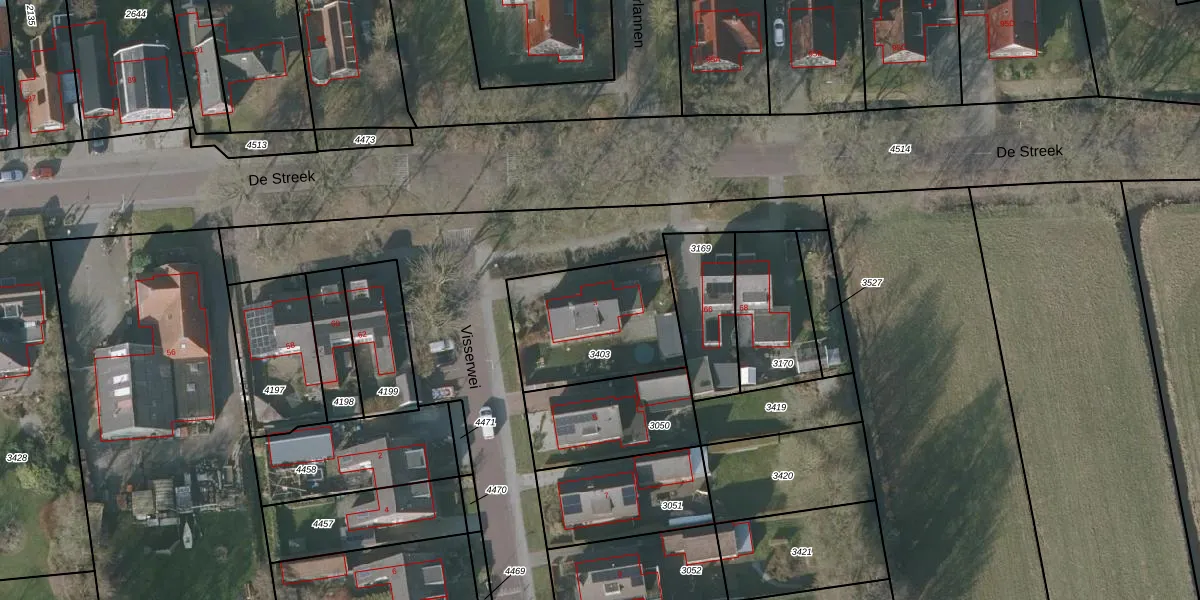 Visserwei 3 is gelegen op kadastraal perceel GRD00B3403. Deze kadastrale aanduiding is uniek en wordt gebruikt door het Kadaster om eigendomsrechten en andere zakelijke rechten vast te leggen. Het perceel maakt onderdeel uit van de kadastrale gemeente Gorredijk.