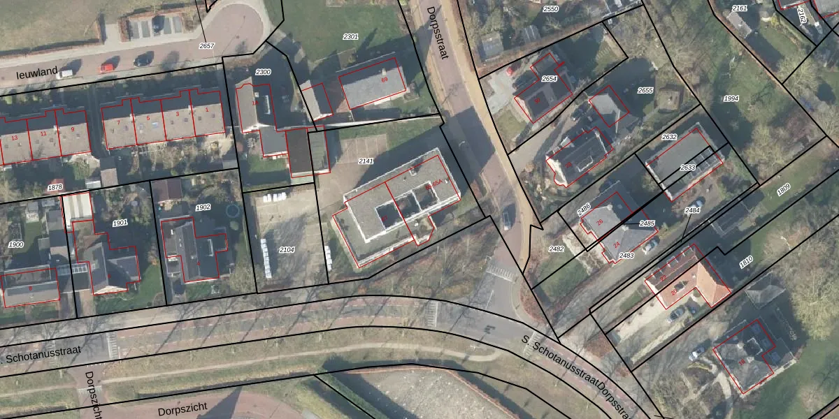 Het perceel waarop Dorpsstraat 65-A staat heeft een oppervlakte van 1170 m². Dit is een zeer groot perceel. De perceeloppervlakte wordt geregistreerd door het Kadaster. Gedetailleerde informatie over de maten van dit perceel kunt u vinden in het rapport Kadastrale kaart met maatvoering van Dorpsstraat 65-A.