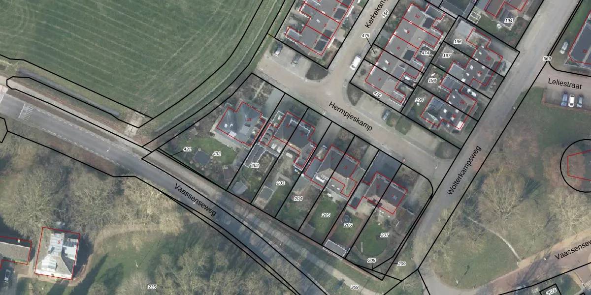 Hermpjeskamp 9 is gelegen op kadastraal perceel VOO00M203. Deze kadastrale aanduiding is uniek en wordt gebruikt door het Kadaster om eigendomsrechten en andere zakelijke rechten vast te leggen. Het perceel maakt onderdeel uit van de kadastrale gemeente Voorst.