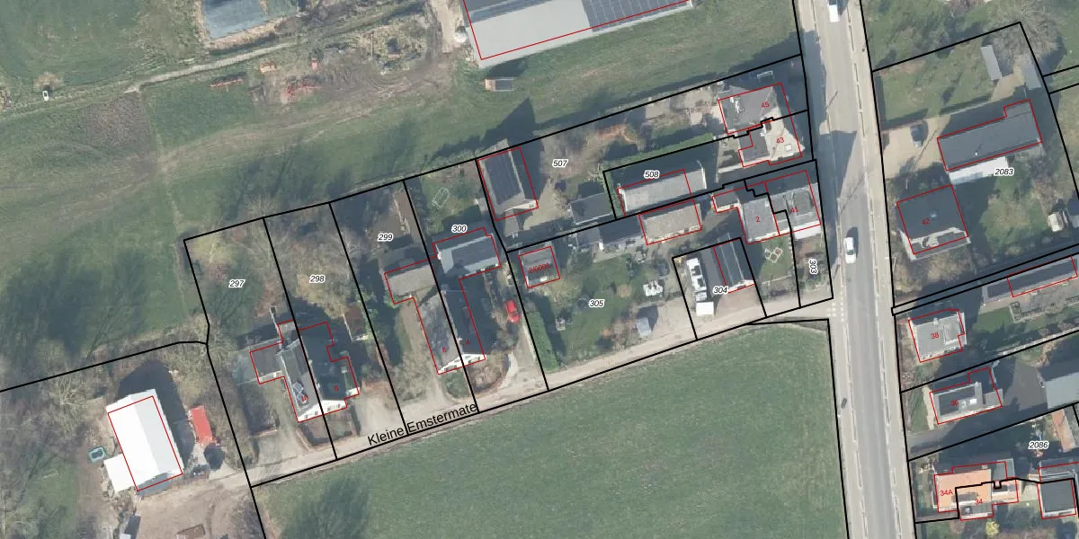 Kleine Emstermate 2-0001 is gelegen op kadastraal perceel VOO00O305. Deze kadastrale aanduiding is uniek en wordt gebruikt door het Kadaster om eigendomsrechten en andere zakelijke rechten vast te leggen. Het perceel maakt onderdeel uit van de kadastrale gemeente Voorst.