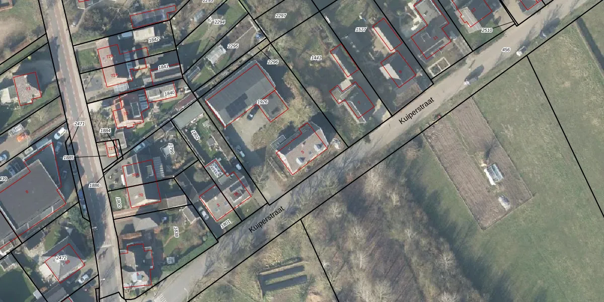 Kuiperstraat 5 is gelegen op kadastraal perceel NBK02D1926. Deze kadastrale aanduiding is uniek en wordt gebruikt door het Kadaster om eigendomsrechten en andere zakelijke rechten vast te leggen. Het perceel maakt onderdeel uit van de kadastrale gemeente Nijbroek.